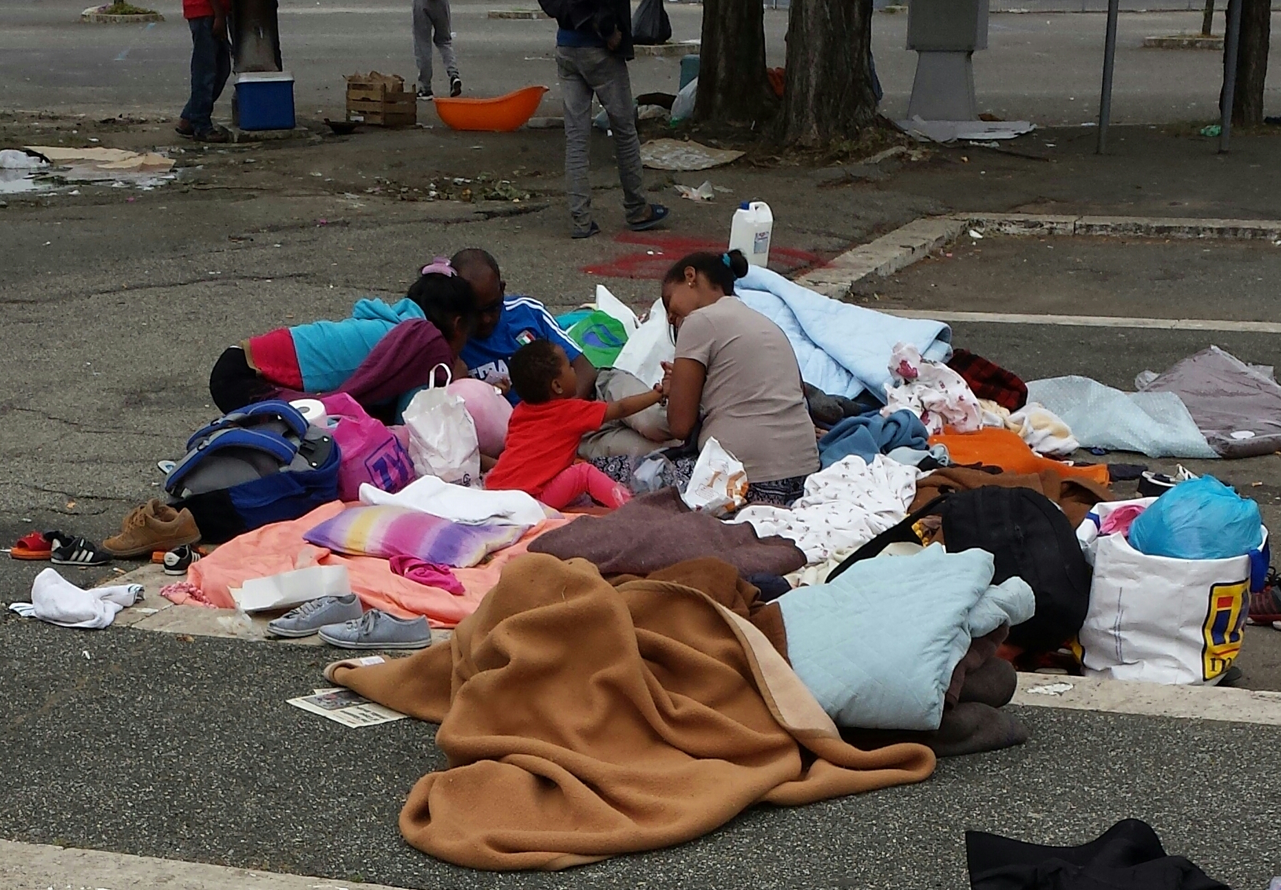 Nei pressi della stazione Tiburtina, uno dei principali snodi ferroviari romani, è facile imbattersi in piccoli gruppi di migranti, perlopiù eritrei. In questi giorni senza sole ma assai afosi cercano riparo sotto gli alberi, accovacciati tra le macchine parcheggiate o sulle poche panchine disponibili. A chi offre loro una bottiglietta d’acqua o del cibo rispondono con un “thank you” comprensibilmente circospetto. Non serve una laurea in psicologia per riconoscere in quegli sguardi la diffidenza di chi è provato, non solo fisicamente, da un viaggio durissimo che non è ancora finito.