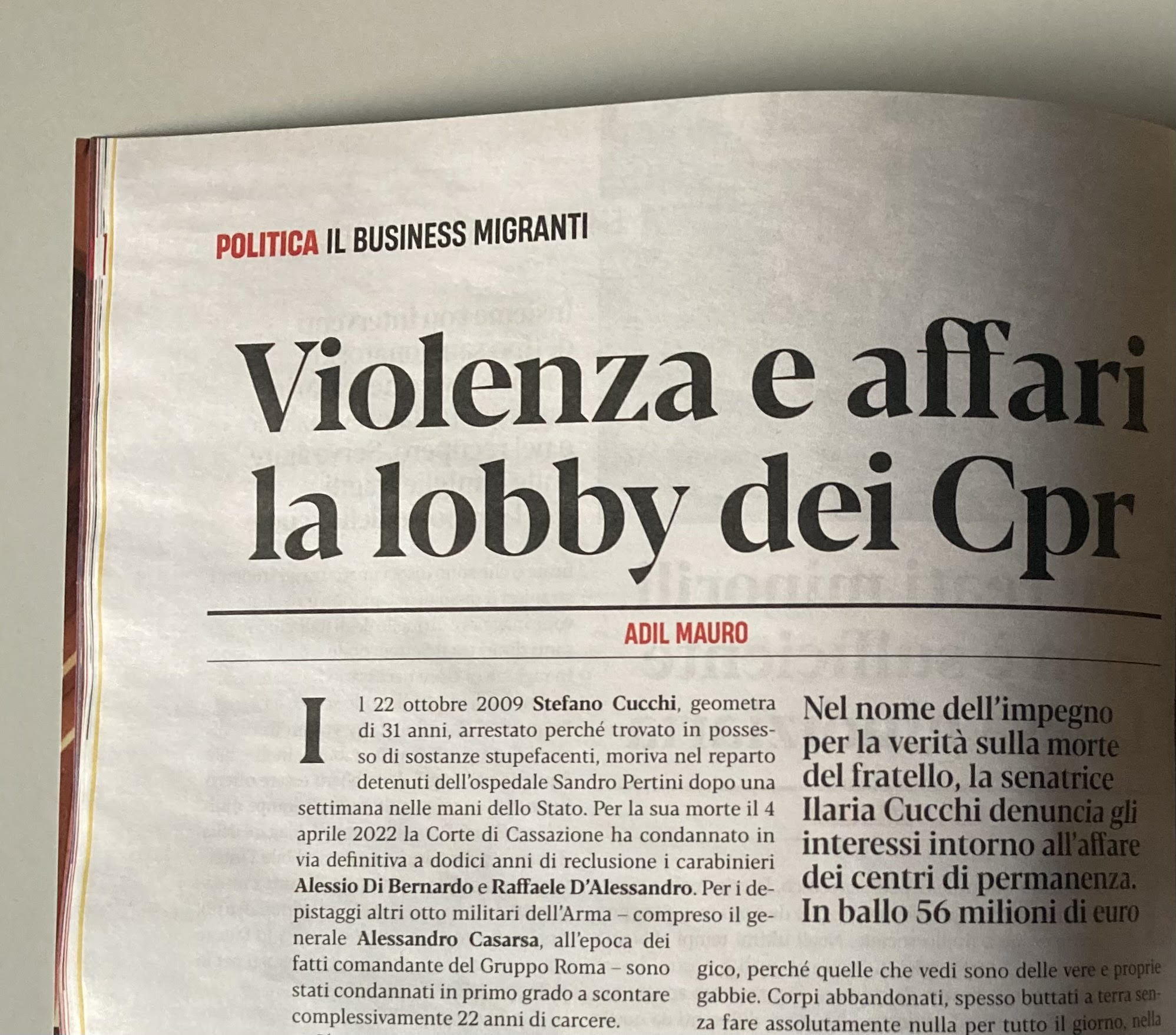 Nel nome dell’impegno per la verità sulla morte del fratello, la senatrice Ilaria Cucchi denuncia gli interessi intorno all’affare dei centri di permanenza. In ballo 56 milioni di euro.