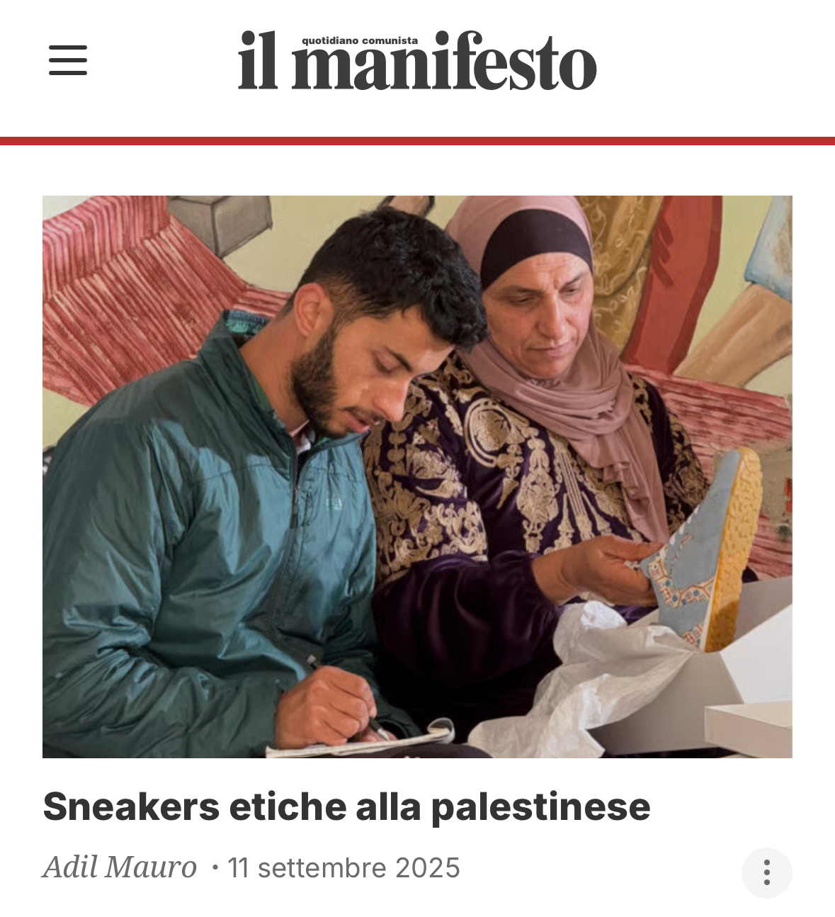 In questo contesto di intimidazioni, violenze e costanti tentativi di pulizia etnica è nata Resolute RGL, start-up di sneaker realizzate da una cooperativa di ricamatrici tatreez (decorazione tradizionale palestinese) fondata da Kifah Adra e sostenuta dal figlio Basel, co-regista del documentario premio Oscar No other land.